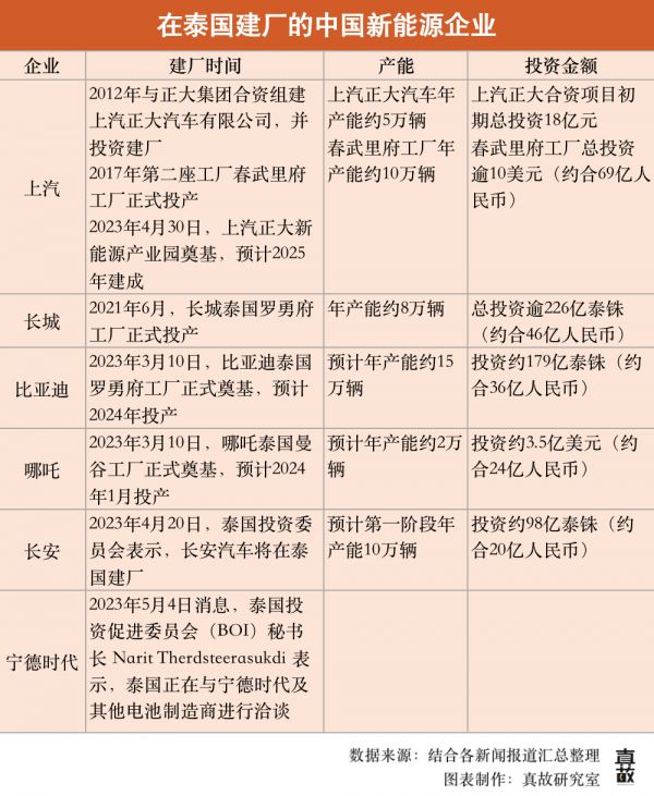 除了车企外,中国电池制造商也对泰国显示出兴趣。