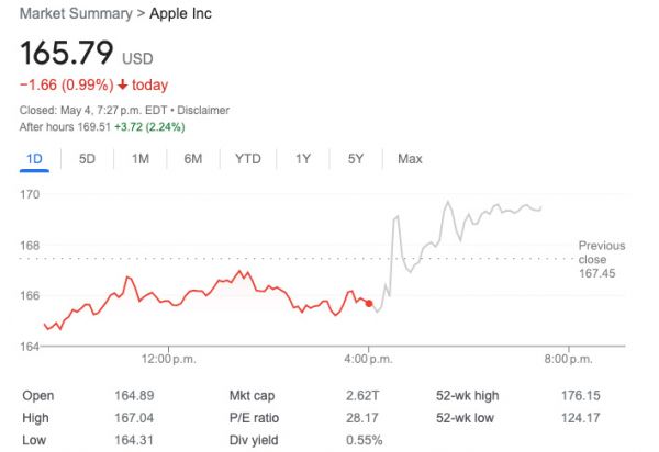 在这一消息的推动下,苹果股价盘后上涨超过2%。