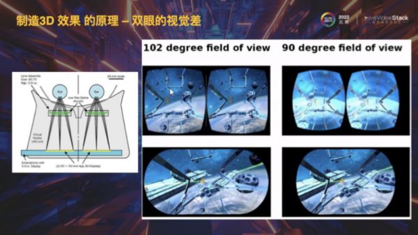 VR眼镜做3D有个天然的优势,它天生就有两个可以独立输出图像的显示屏,只要两个显示屏能各自输出无限逼真的图像,那么虚拟现实就是现实的图像。