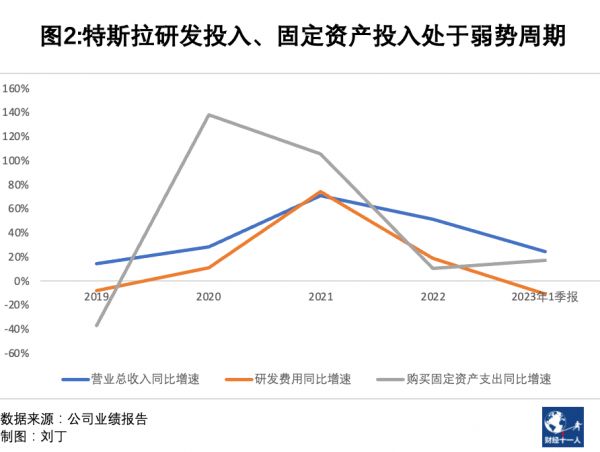 在竞争对手纷纷加大投入,缩小与特斯拉差距的时候,特斯拉的研发、投入却进入了弱周期,第二支箭迟迟不发。