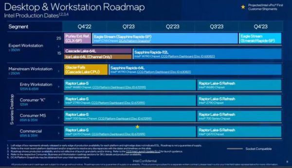视频中表示英特尔将于 2023 年第 3 季度推出 Raptor Lake 处理器,支持现有的 LGA 1700 平台。