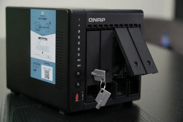 据介绍,TS-464C2 外观做了全面升级,颜色升级为全黑色更具有科技感,此外硬盘槽升级为可锁式硬盘槽,可以避免硬盘被意外拔出,让数据更安全。