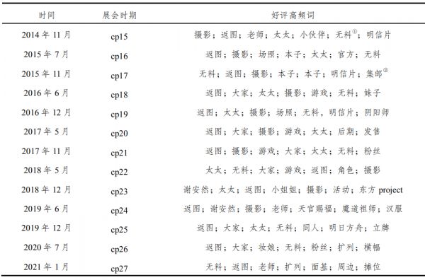 cp15~cp27游客好评高频词演变
