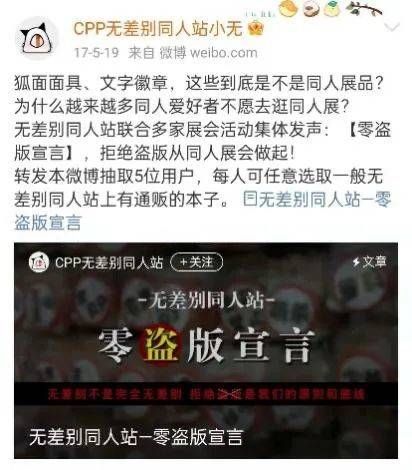 CPP无差别同人站发表《零盗版宣言》