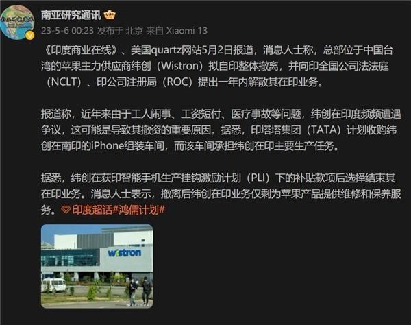 纬创宣布全面撤出印度市场!