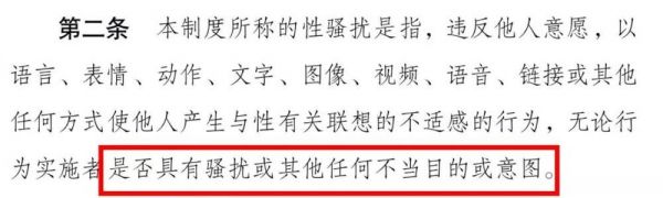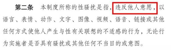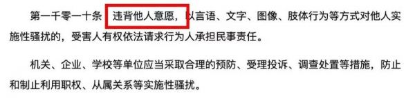 后续相关的法律条文都有指出:违背意愿是性骚扰的构成要件。