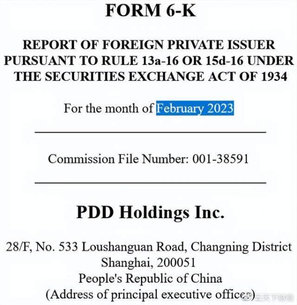 拼多多最后一次显示“主要行政办公地址”在中国上海,还要追溯至今年2月9日在其向美国SEC提交的6-K文件中。