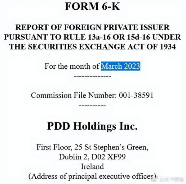 其实,拼多多早在3月12日向美国证监会提交的6-K文件中,就已经把“主要行政办公地址”从中国上海改为了爱尔兰都柏林。