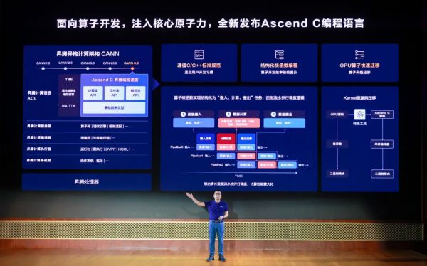 昇腾Ascend C编程语言通过高性能类库接口即可实现算子核心逻辑,针对GPU的Kernel级源码迁移工具,还可以将算子迁移时间从“周级”降到“天级”。
