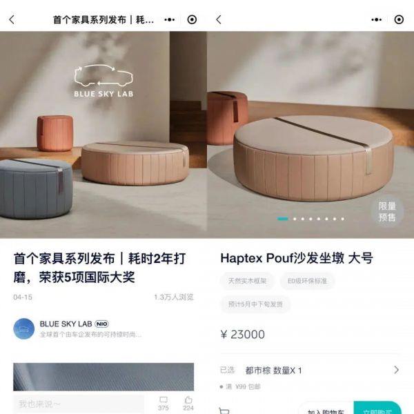 近一段时间,蔚来又出圈了,但却不是因为自家的车,而是周边产品。有网友发现,在蔚来汽车的APP和小程序商城上出现了一款沙发坐凳,最高售价竟然高达23000元。