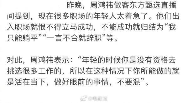 周鸿祎做客东方甄选提到:现在很多职场年轻人都太着急了……