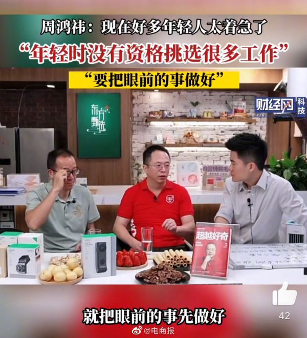 #周鸿祎称职场年轻人太着急# 周鸿祎做客东方甄选提到:现在很多职场年轻人都太着急了,恨不得立马成功。年轻时是没有资格去挑选很多工作的,要做好眼前事。#周鸿祎称年轻时没资格挑工作#