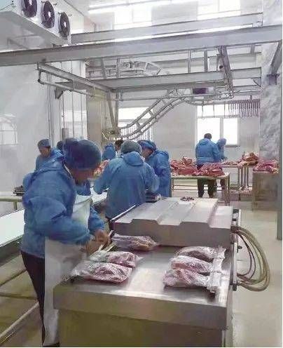 ▲淄博一清真食品工厂内,工人正在分装牛羊肉。受访者供图