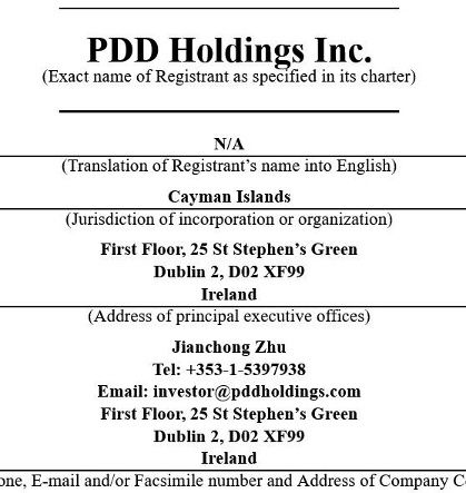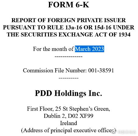 据媒体核实,拼多多(PDD.US)在4月26日向美国证券交易委员会(SEC)提交的20-F年报文件就披露显示,拼多多的公司地址、联系人电话均显示为爱尔兰都柏林。值得注意的是,作为美股上市公司,拼多多此前各类文件中,其公司所列地址在2月份之前依旧是上海,地址变更的日期最快也就是4月份。