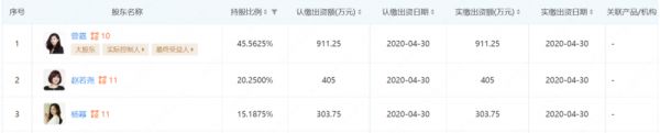 嘉行传媒是由金牌制作人、经纪人曾嘉、赵若尧携手合伙人杨幂共同创建的新兴多元化娱乐产业公司。启信宝显示,曾嘉是嘉行传媒第一大股东和实际控制人,持股约45.56%,第二大股东赵若尧,持股20.25%,第三大股东杨幂,持股比例为15.18%。