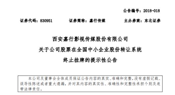 不过,2018年5月份,嘉行传媒在新三板终止挂牌,这距离2016年借壳挂牌,仅过去不到两年。嘉行传媒也向外界透露,摘牌的目的是“加快融资节奏”。