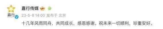 5月8日,著名演员杨幂通过个人微博发文官宣与嘉行传媒结束合作关系。同时,嘉行传媒发文:“十几年风雨同舟,共同成长,感恩感谢。祝未来一切顺利,珍重安好。”