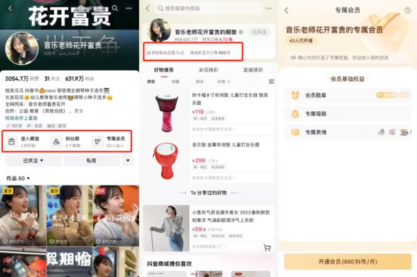 目前黄老师账号主页显示的部分商业方式。橱窗内会带货儿童打击乐器