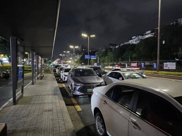 △ 夜市摊旁违停的车辆占据了公交站 陈熊海摄