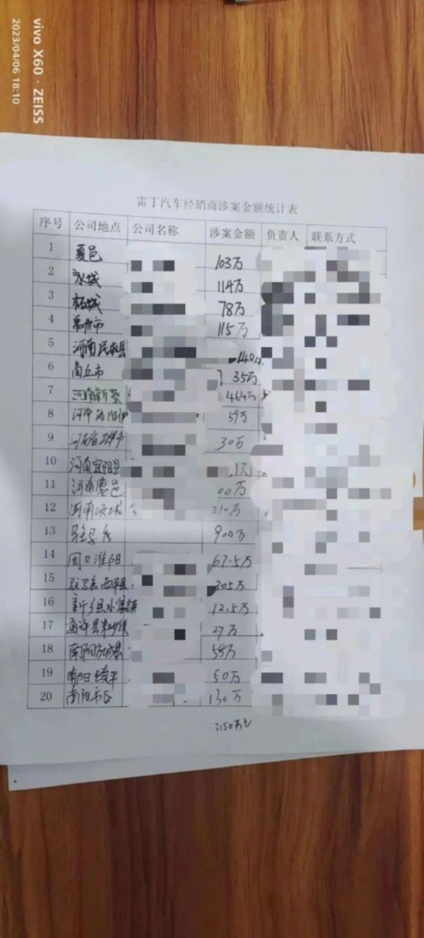 雷丁不交车,刘先生的业务无法开展,门店只能靠二手车业务勉力维持。刘先生先后在雷丁所在地待了近三个月,但却没能讨回欠款,而他的经历只是广大经销商的一个缩影。