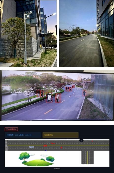 本次测试基于 2.6GHz 网络环境,路侧部署 5G 摄像头,将视觉感知信息通过 Uu 口上传至基站,经集成部署于基站的鬼探头应用处理,实时生成 V2X 预警信息,并通过 Uu 口发送至车辆,实现鬼探头预警提示。