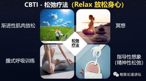 除了这一项之外,CBTI还提到非常重要的一面,这对普通大众最实用了:放松训练,也叫做松驰疗法,目的就是帮助我们放松大脑、放松肌肉。
