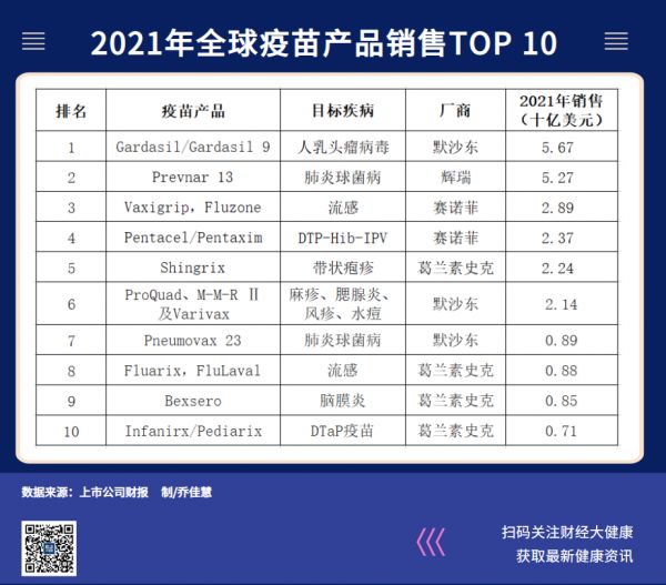 咨询机构沙利文的分析数据显示,2020年中国疫苗销售额排行榜上,默沙东靠四价HPV疫苗和九价HPV疫苗两款主力产品,以136.5亿元高居榜首,只比排名第二、三、四的沃森生物、辉瑞、北京生物所三家总和少5.4亿元。
