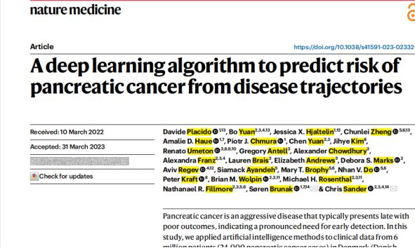 A deep learning algorithm to predict risk of pancreatic cancer from disease trajectories. Nature Medicine.