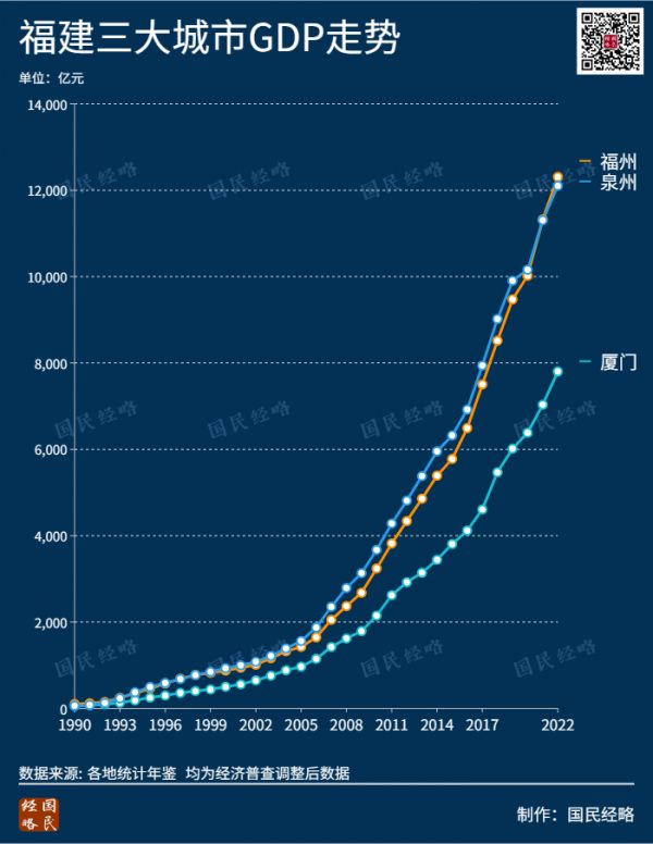 当年,省会福州赶超泉州,重回福建省经济第一大市之位,并在随后保持并扩大了领先优势。