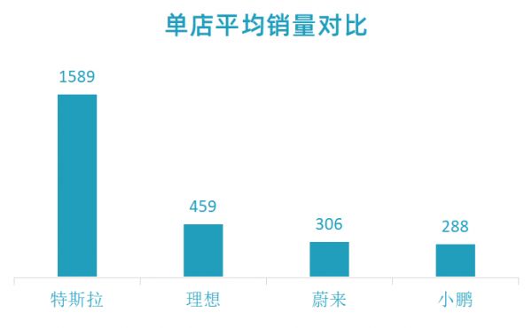 注:计算方法:销量为终端销量,门店数特斯拉为截至5月4日的官网公布数据,蔚小理为2022年报数据。制图:《电动汽车观察家》
