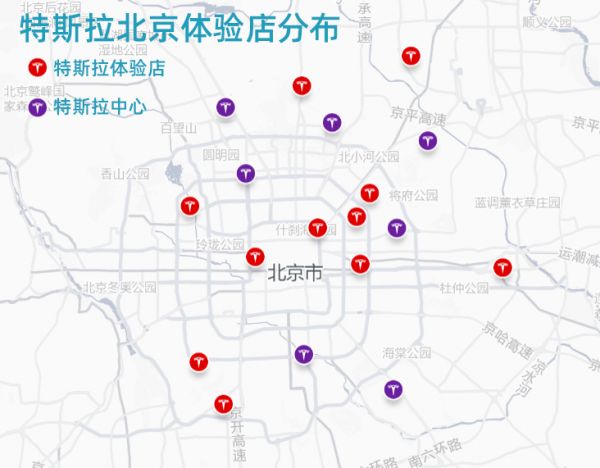 以北京为例,特斯拉11个体验店在热门商圈布局,而7个特斯拉中心则在4环及以外。