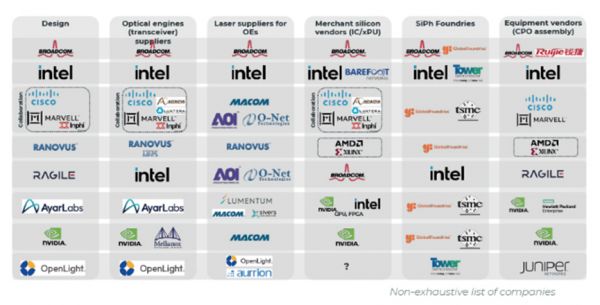 分析表明,与数据中心总功耗相比,联网节省的功耗可以忽略不计。只有博通、英特尔、Marvell和其他一些CPO公司会将专有解决方案推向市场。