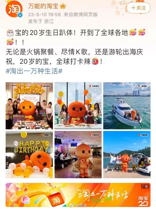 为了庆贺淘宝20周年,淘宝提出了“淘出一万种生活”的全新 slogan,在为消费者打开了一万种生活图景想象的同时,鼓励人们保持年轻,保持好奇,勇敢探索。