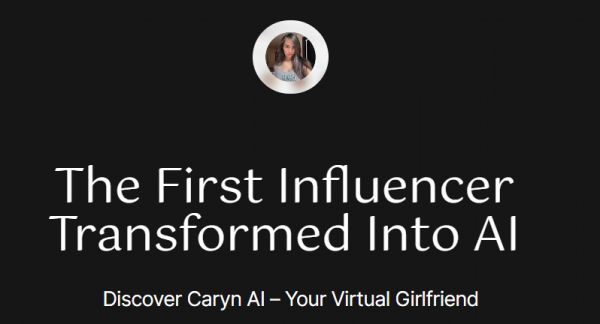 在Caryn AI的主页上赫然写着:“第一位网红化身的AI——你的虚拟女友”。
