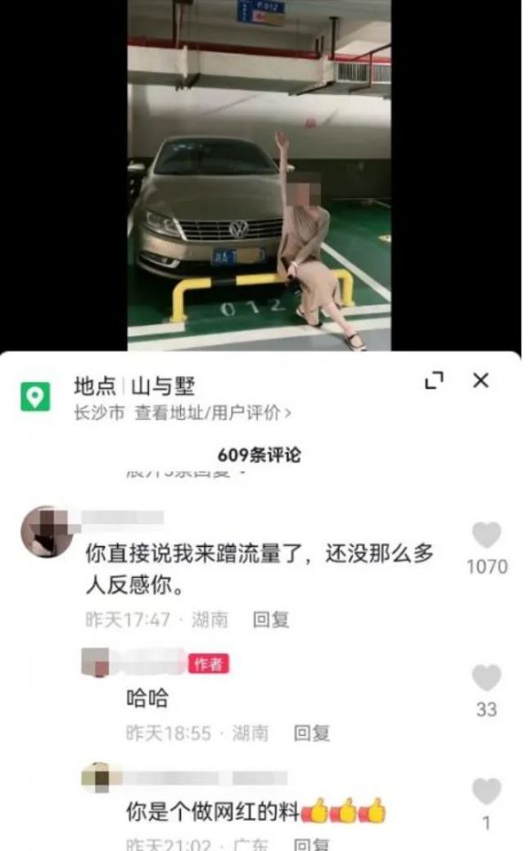 围住车位的不仅是铁栏杆,还有通往直播间的摄像头。这几天,湖南长沙望城区山与墅小区被栏杆焊死的车位还在“发热”。据潇湘晨报报道,不断有人来到涉事车位“打卡”。一名小区保安称,5月9日涌入围观的人群估摸有一千人,大部分是来拍照拍视频或直播的。期间一名女子坐在涉事车辆前的栏杆上,高举右手喊道“我来主持公道啦”,然后上传到短视频平台。账号页面显示,她是一名卖酱板鸭的博主,评论区内对她一片质疑。
