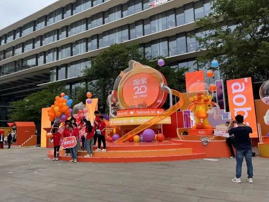 在淘宝20周年当日,阿里园区庆祝的氛围很淡,更多的员工则来不及庆祝,忙着备战618。