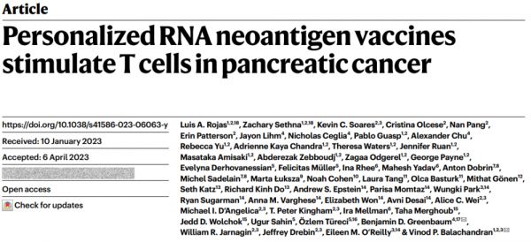 [2] Personalized RNA neoantigen vaccines stimulate T cells in pancreatic cancer. Nature (2023). DOI: https://doi.org/10.1038/s41586-023-06063-y