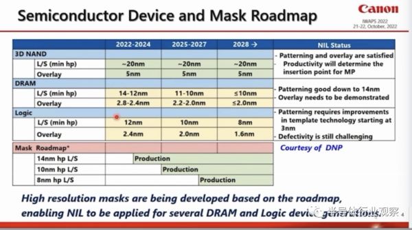 也大概是自此之后,一直有佳能将纳米压印技术用于量产存储芯片的新闻。