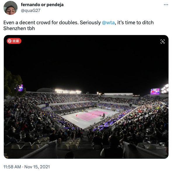▲2021年瓜达拉哈拉WTA年终总决赛,一位网友贴出双打比赛上座状况并质疑中国赛季赛事的影响力。