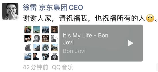 当天,徐雷连发两条朋友圈直接回应退休一事。他先是“谢谢大家,请祝福我,也祝福所有人”,还特意配上了歌曲《It‘s My Life》;或许是意犹未尽,他又发了一条细数了自己在站最后一班岗,刚刚结束最后一次财报会,与IR同学们合影留念,“感恩一路走来遇见的所有的人,让我们相互成为经历”。