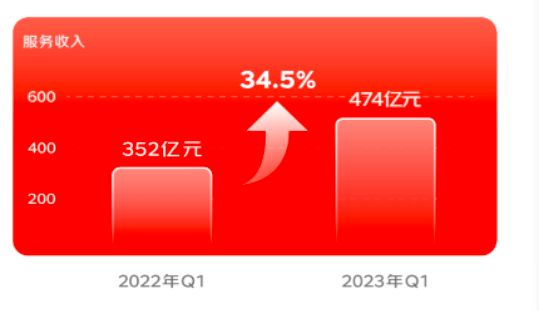 财报数据显示,2023年第一季度,京东营收创新高,较去年同期增长1.4%至2430亿元。亮点在于,其服务收入同比增长34.5%至474亿元,占总营收的19.5%。