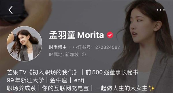 #孟羽童更改小红书标签# 【#孟羽童目前已接19条商广# 】据界面新闻消息,被外界视为董明珠接班人的孟羽童宣布告别格力,对于此次从格力离职,孟羽童表示只是人生某一个阶段的选择而已,接下来自己打算读研。