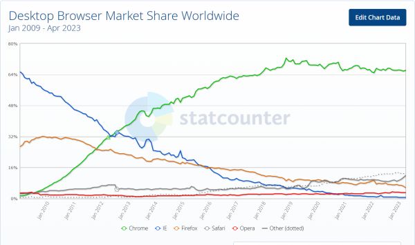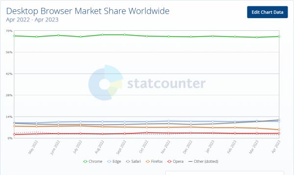 桌面浏览器市场份额,图/Statcounter