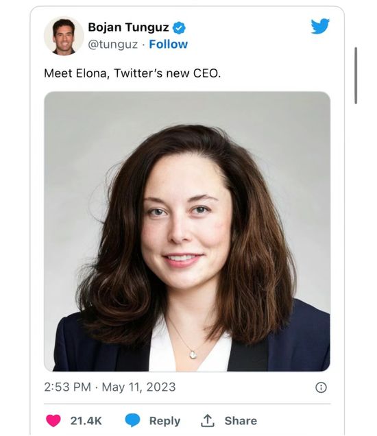 甚至还有人开玩笑说是,嗯,是这位马斯克的妹妹Elona。