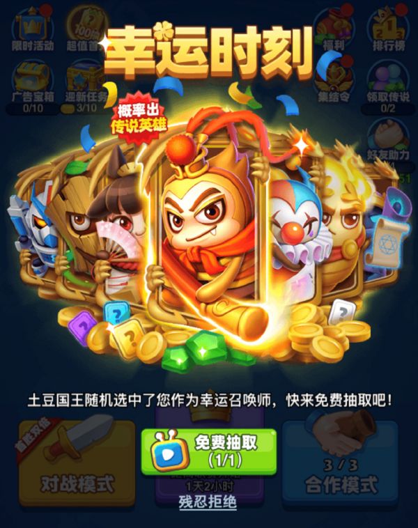 游戏广告示例,点击免费抽取按钮就需要观看30s广告