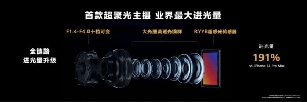华为P60 Pro在影像方面的最大优势,来自于其搭载的超聚光XMAGE影像系统。其中,超聚光夜视长焦镜头打破了传统潜望式长焦设计的限制,业界首创超聚光长焦镜群,配备了F2.1的超大物理光圈、RYYB超聚光传感器,进光量对比华为P50 Pro提升了178%,达到媲美主摄的进光量,也成为了业内进光量最大的长焦镜头,并加入长焦三轴传感器位移防抖技术,让光学防抖大幅增强。