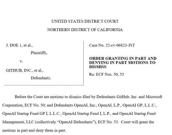 Copilot 版权集体诉讼案新进展,微软和OpenAI获喘息机会