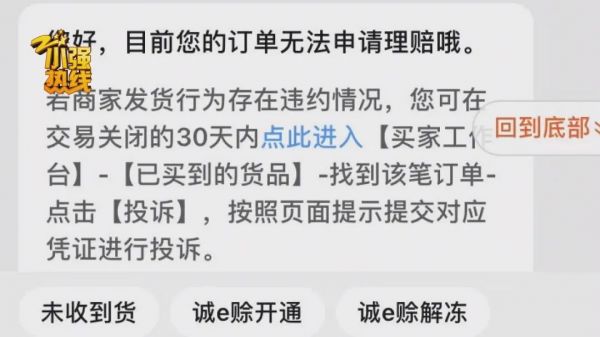 小强提醒:网购最好选择知名的网购平台,在购买货值比较大产品的时候一定要多关注物流动态,如果十天内没收到对应的货物,一定要及时延长收货时间,并与平台取得联系。(小强热线浙江教科)