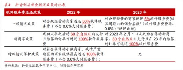 即便是2022年6月开始收取佣金后,抖音的佣金费率一直远低于市场水平,其平均佣金费率为4.06%,低于美团,且每个月持续返点。