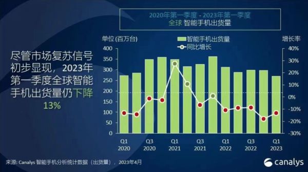 市场分析机构Canalys公布数据称,2023年第一季度全球智能市场同比下跌12%,是连续第五个季度出现下跌。